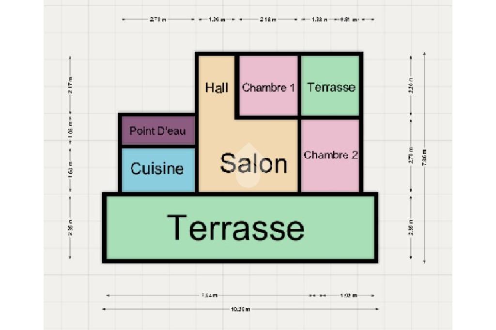 L'entrée dessert une pièce de vie spacieuse qui peut aménager aisément un salon et une salle à manger donnant accès à une terrasse .
