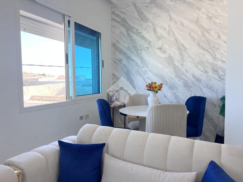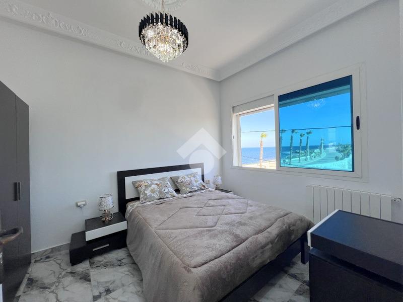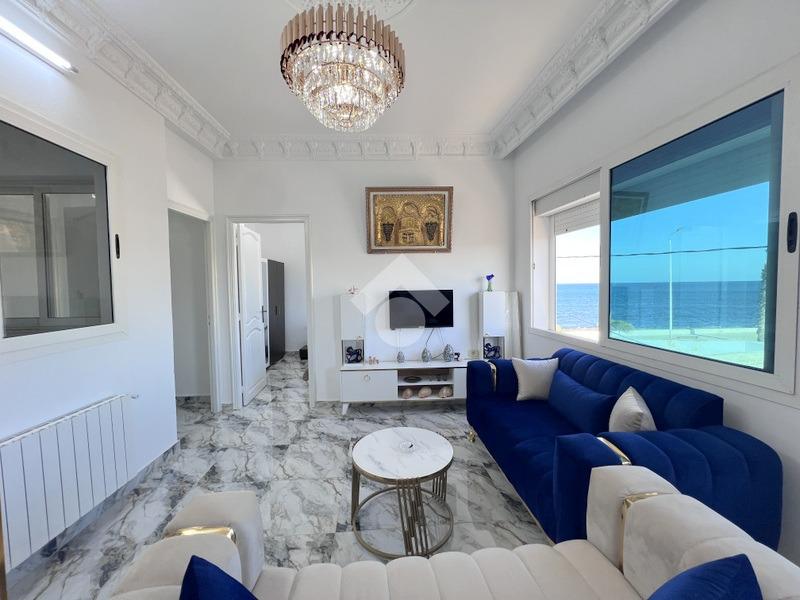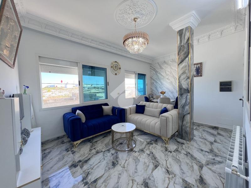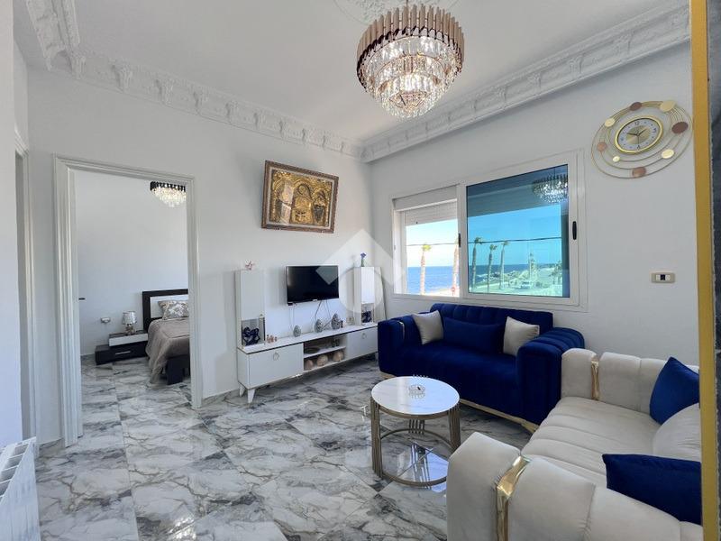 Cet appartement S+2 meublé est situé au premiere étage d’une résidence idéalement implantée à Borj Erass, les pieds dans l’eau.