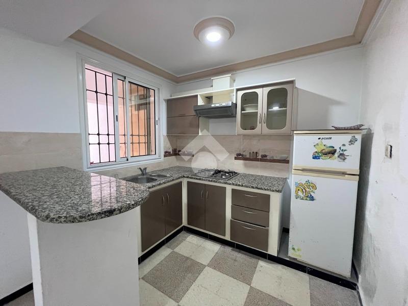 Les escaliers mènent à un appartement de type S+3 qui abrite trois chambres à coucher, une salle de douche et une cuisine.